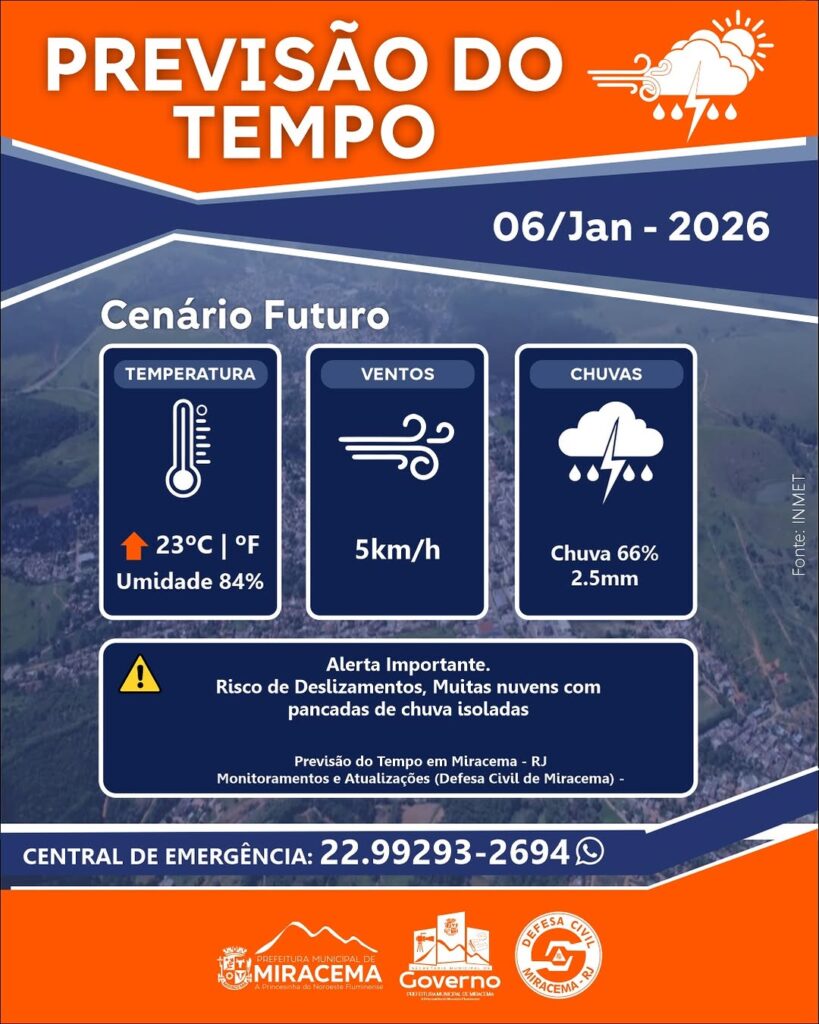 A Prefeitura de Miracema segue monitorando as condições do tempo e reforça: a prevenção salva vidas. Fique atento às atualizações e cuide de você e de quem está ao seu redor.