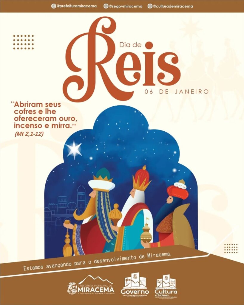 Em Miracema, essa data carrega cultura, religiosidade e identidade do nosso povo, mantendo viva uma herança que une passado, presente e futuro. Que o espírito do Dia de Reis renove nossos lares com paz, solidariedade e fé em dias melhores. 🌟