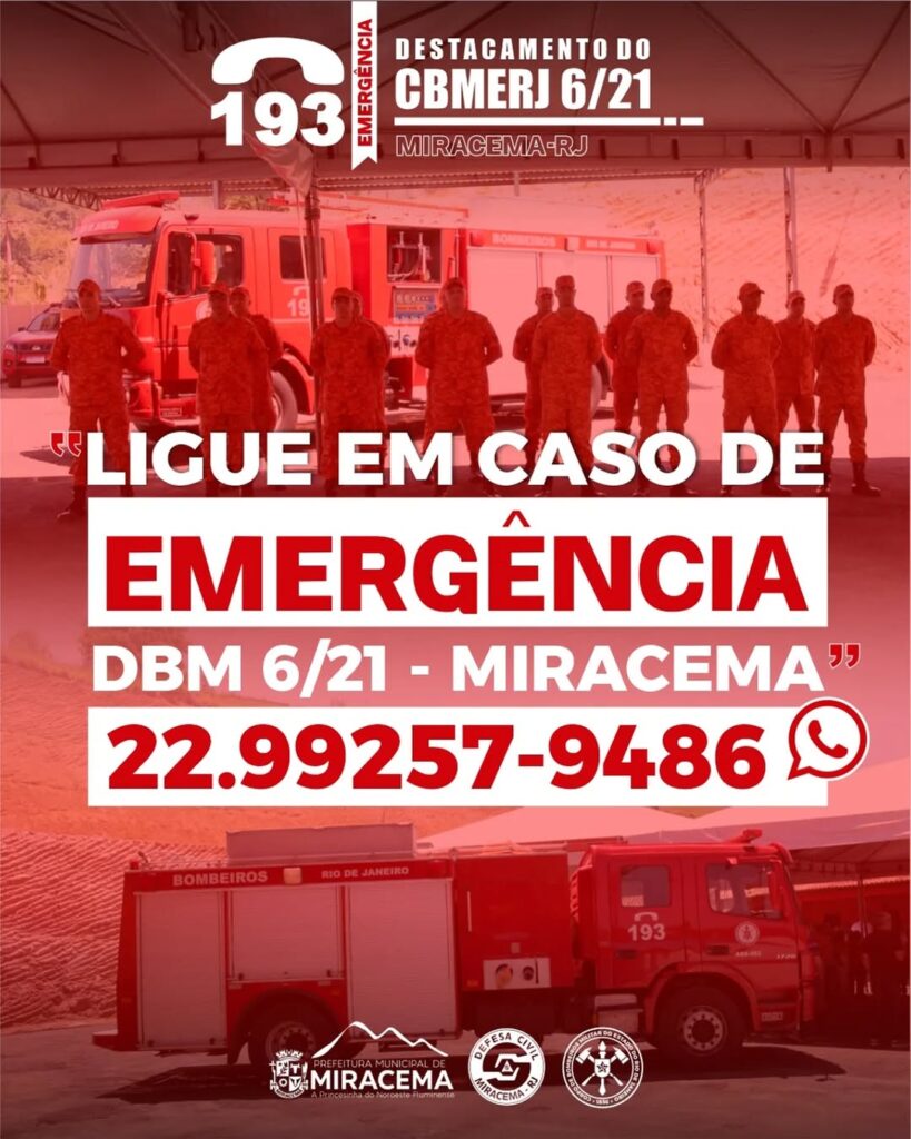 O Destacamento de Bombeiros Militar (DBM) 6/21 – Miracema/RJ está à disposição para atendimentos de emergência, garantindo mais segurança e agilidade no socorro à população.