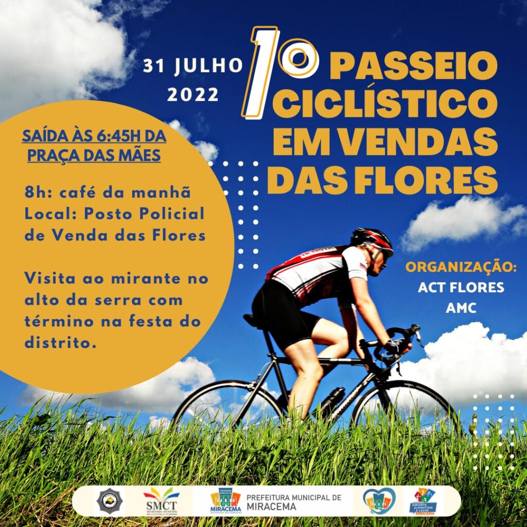 A ACTFlores (Associação de Cultura e Turismo Rural de Venda das Flores), juntamente à AMC (Associação Miracemense de Ciclismo), com o apoio da Prefeitura Municipal de Miracema, promoverá o primeiro passeio ciclístico em Venda das Flores.