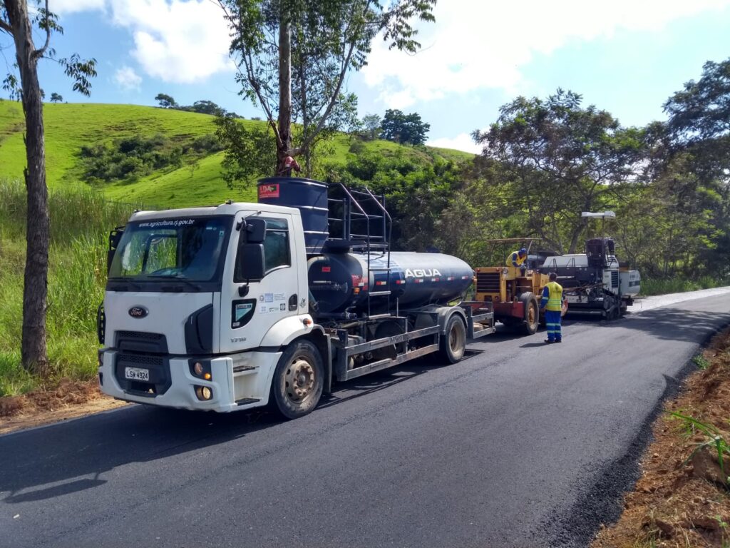 A obra de reforma da RJ-200, no trecho de Paraíso do Tobias à Divisa de MG, está recebendo apoio direto da Secretaria de Desenvolvimento Agropecuário, através do transporte de massa asfáltica, abastecimento do reservatório de água do rolo compactador e, por vezes, algum auxílio com maquinário pesado da frota municipal.