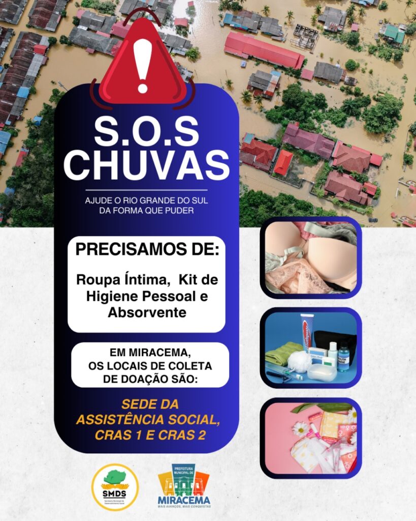 As doações serão focadas em: Roupa íntima ( sutiã, calcinha, cueca), Kit de Higiene Pessoal e Absorvente.