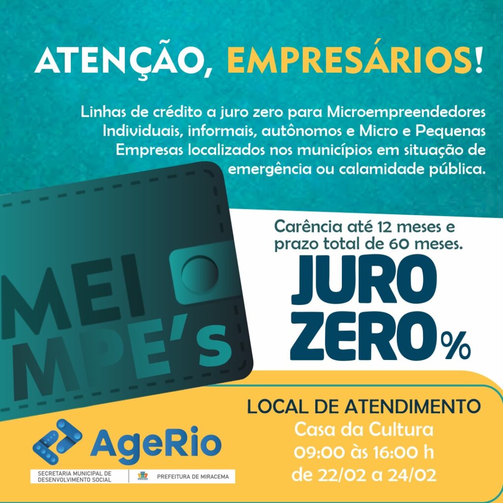 A partir de amanhã, 22/02, das 9h às 16h, a AgeRio (Agência Estadual de Fomento) estará com uma equipe na Casa de Cultura para atender aqueles que, devido às enchentes, sofreram danos.