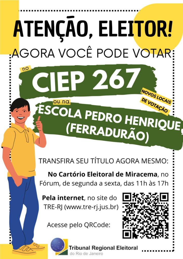 ATENÇÃO, ELEITOR agora você pode votar em novos locais de votação em Miracema: