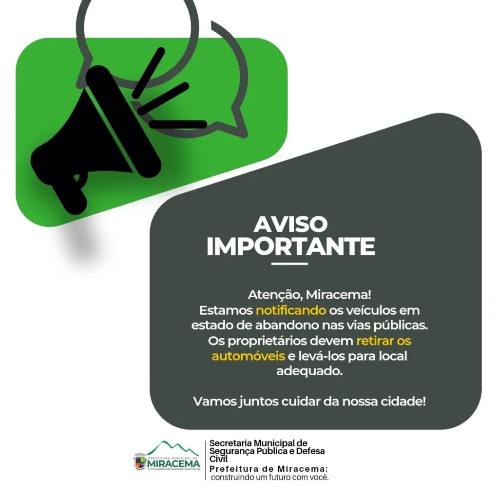 Estamos notificando os veículos em estado de abandono nas vias públicas.