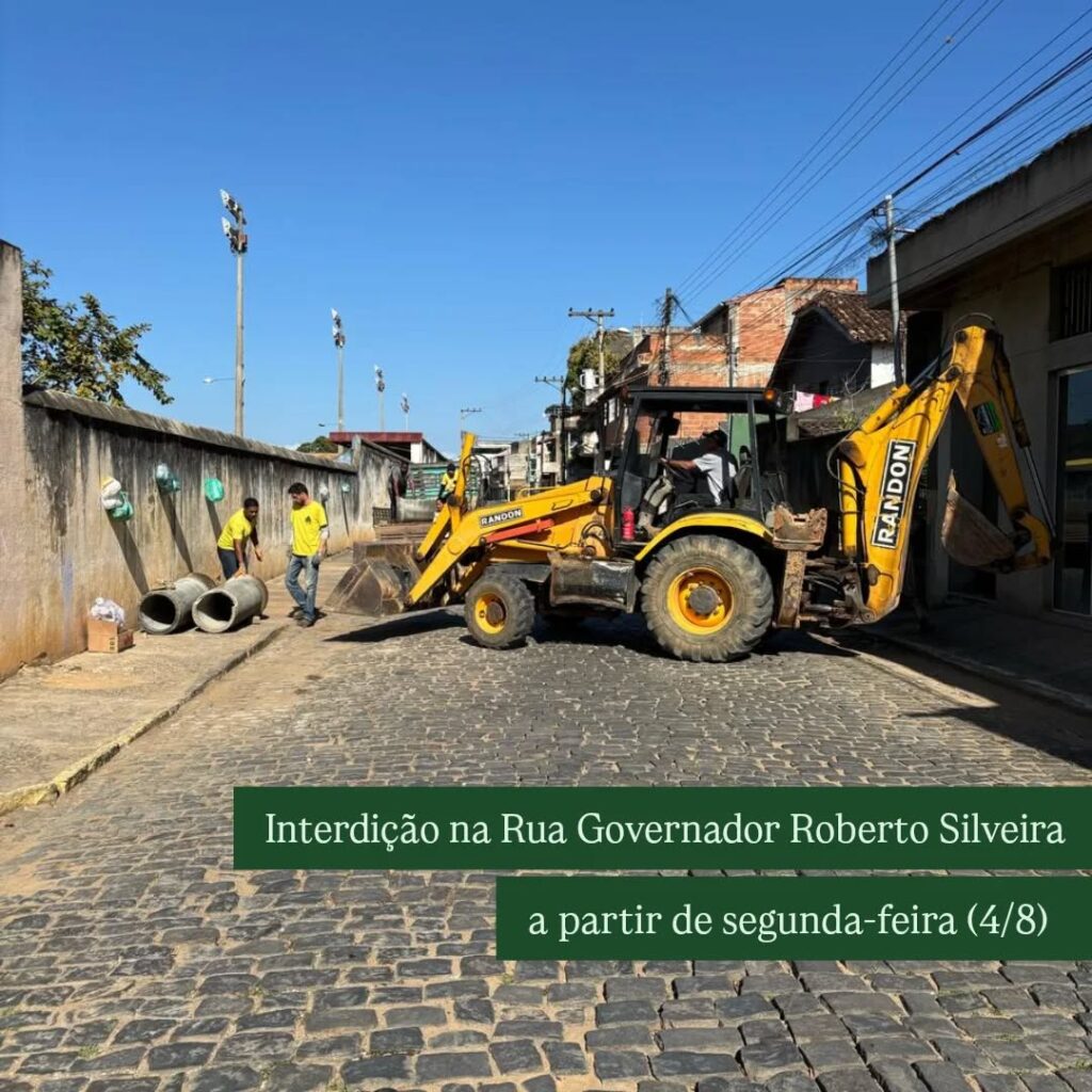A Prefeitura de Miracema dará início, na próxima semana, às obras de implantação da nova rede de esgoto e da rede de escoamento de águas pluviais na Rua Governador Roberto Silveira. Por esse motivo, a via será parcialmente interditada em trechos específicos, de acordo com o andamento da obra.