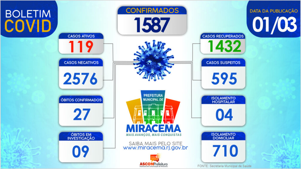 ATUALIZAÇÃO BOLETIM CORONAVÍRUS DIA 01/03/2021