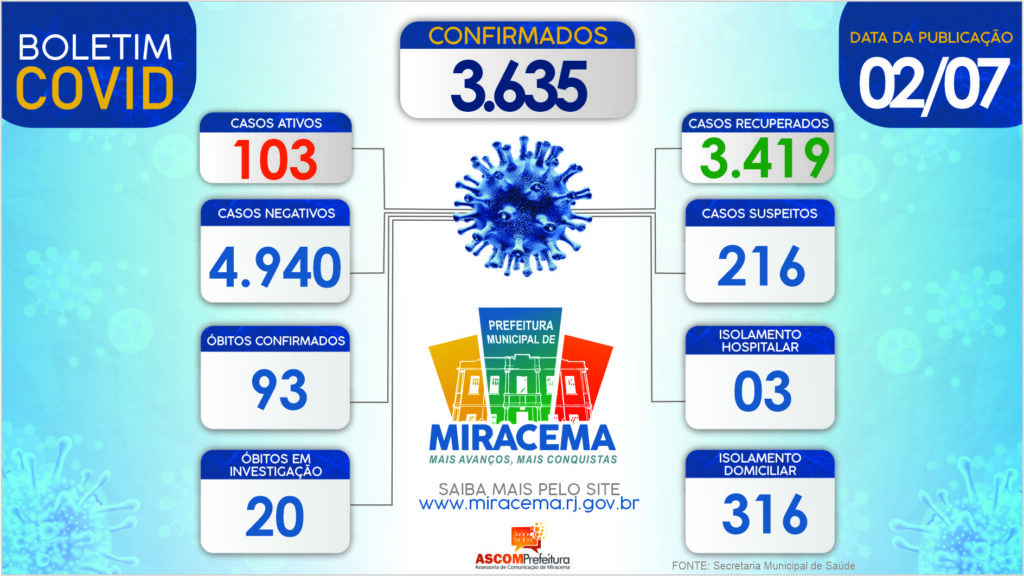 ATUALIZAÇÃO BOLETIM CORONAVÍRUS DIA 02/07/2021