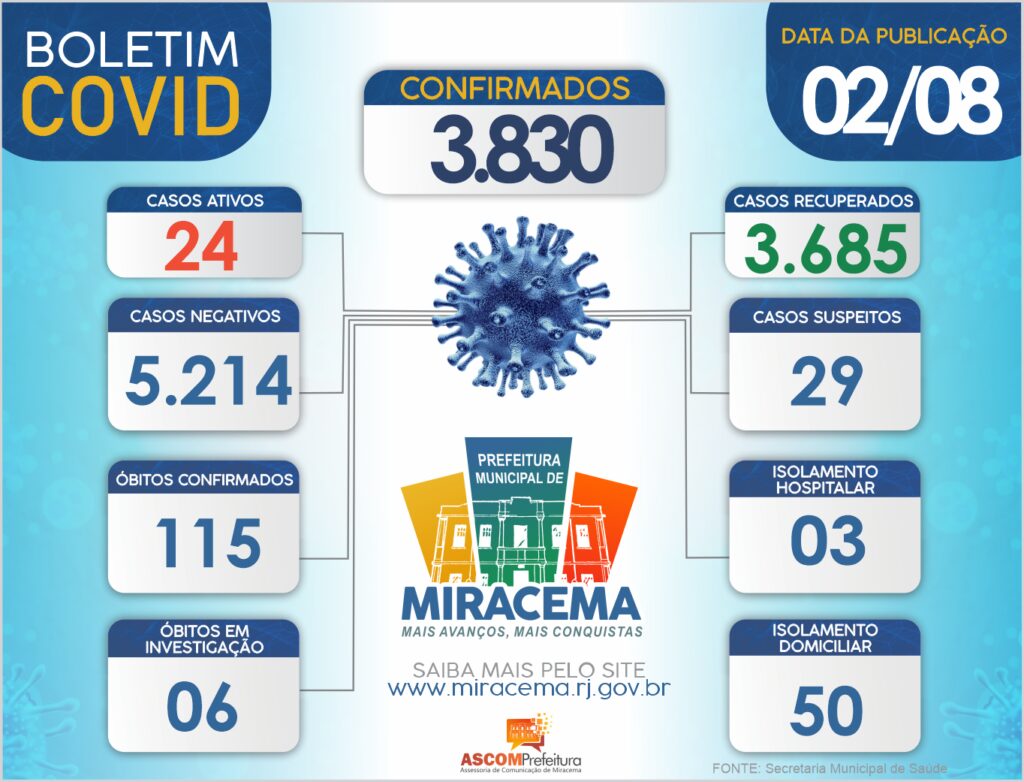 ATUALIZAÇÃO BOLETIM CORONAVÍRUS DIA 02/08/2021