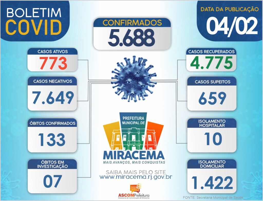 ATUALIZAÇÃO BOLETIM CORONAVÍRUS DIA 04/02/2022
