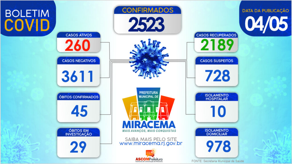 ATUALIZAÇÃO BOLETIM CORONAVÍRUS DIA 04/05/2021