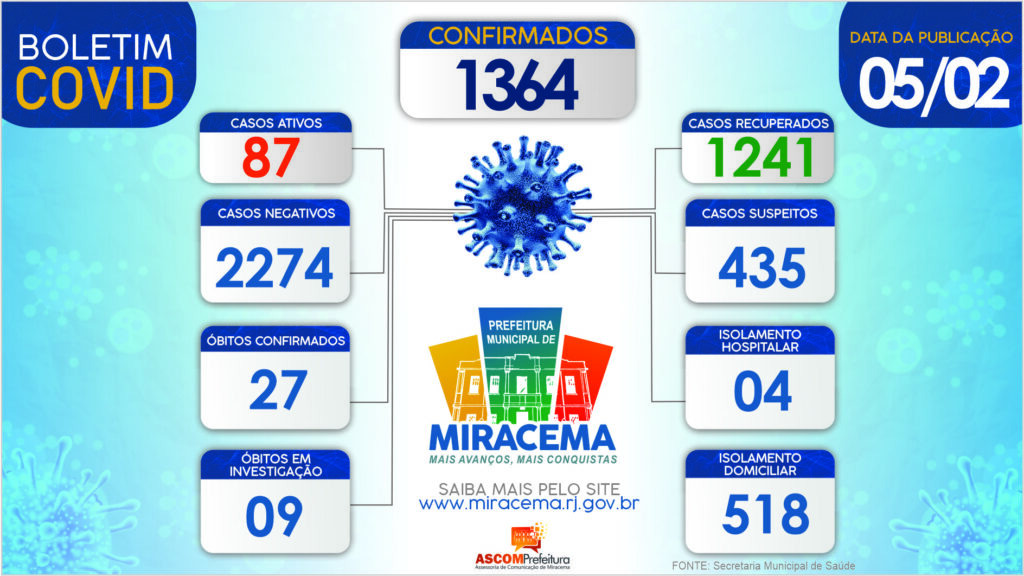 ATUALIZAÇÃO BOLETIM CORONAVÍRUS DIA 05/02/2021