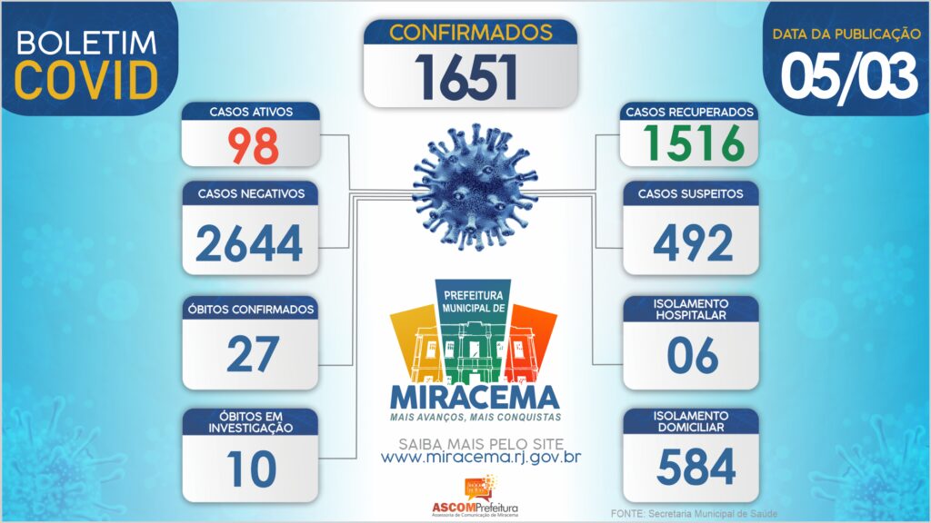 ATUALIZAÇÃO BOLETIM CORONAVÍRUS DIA 05/03/2021