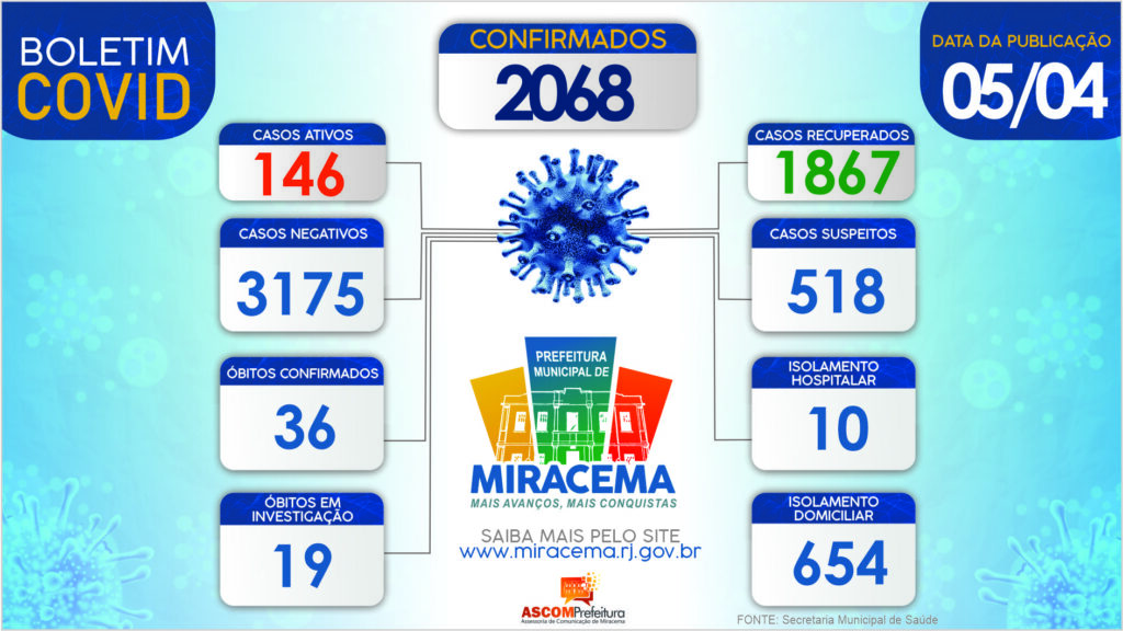 ATUALIZAÇÃO BOLETIM CORONAVÍRUS DIA 05/04/2021