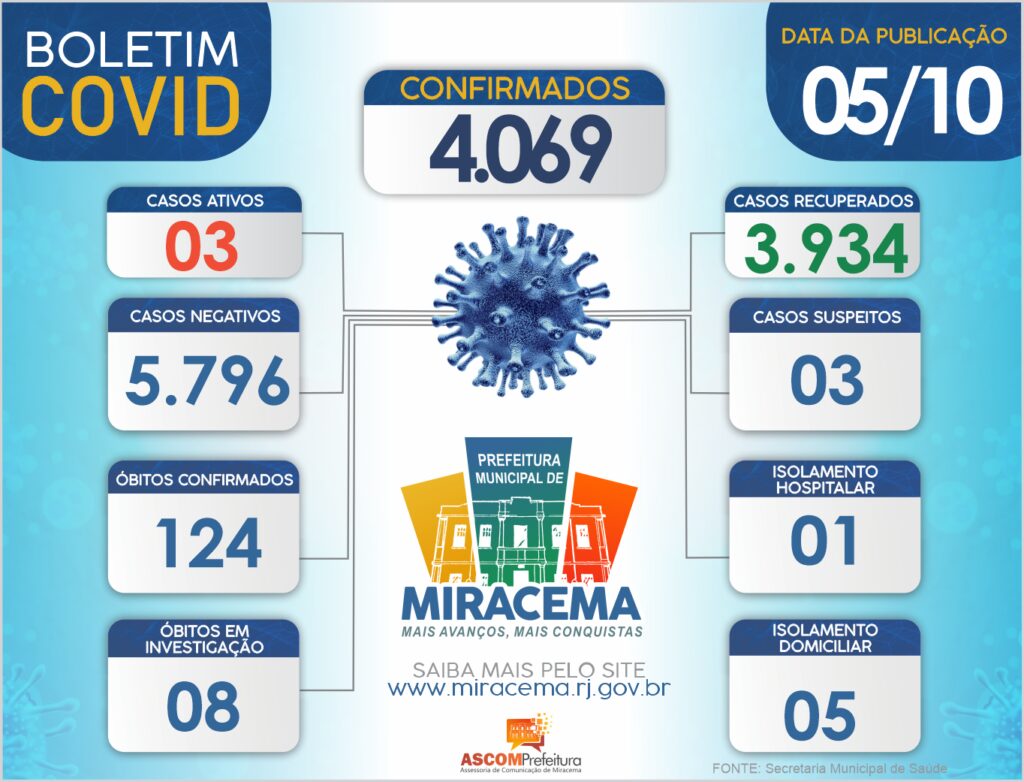 ATUALIZAÇÃO BOLETIM CORONAVÍRUS DIA 05/10/2021