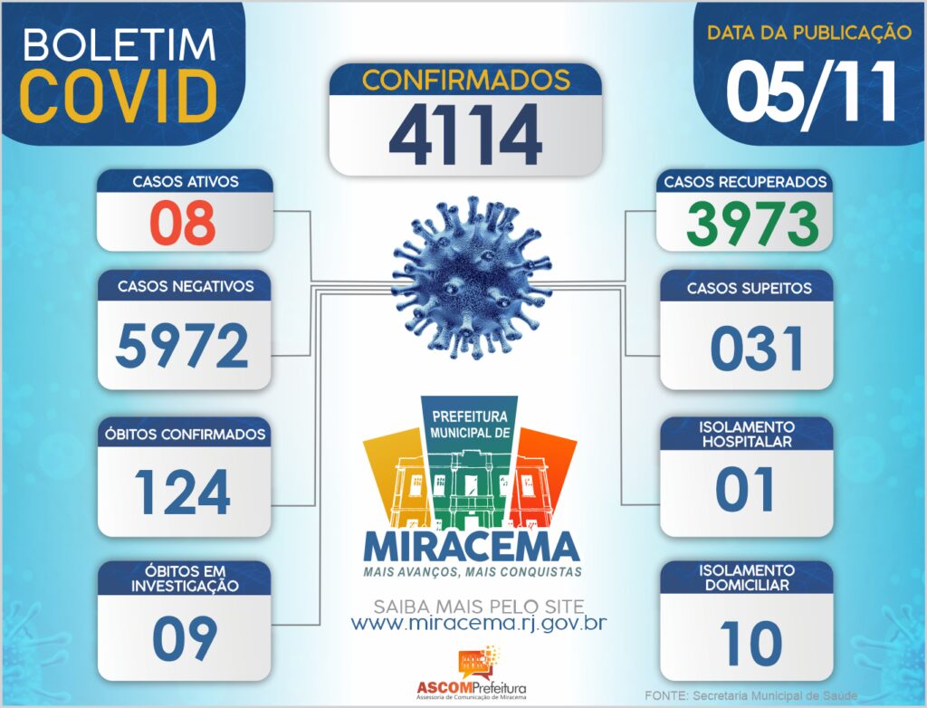 ATUALIZAÇÃO BOLETIM CORONAVÍRUS DIA 05/11/2021