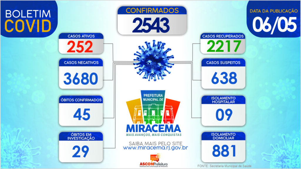 ATUALIZAÇÃO BOLETIM CORONAVÍRUS DIA 06/05/2021