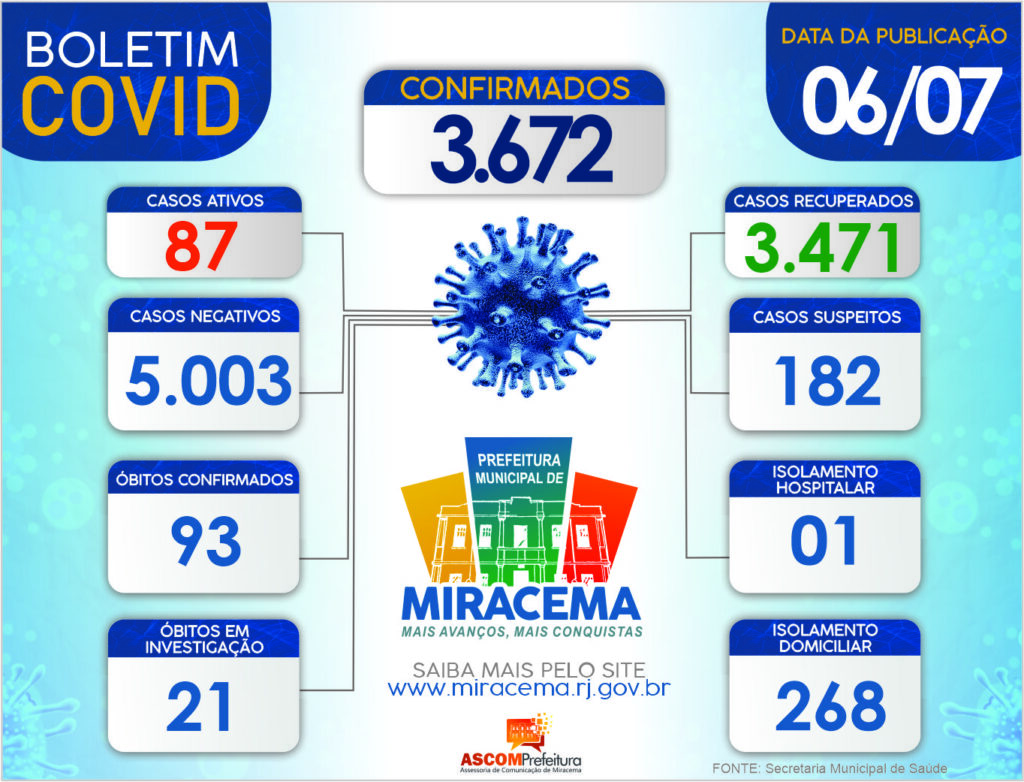 ATUALIZAÇÃO BOLETIM CORONAVÍRUS DIA 06/07/2021