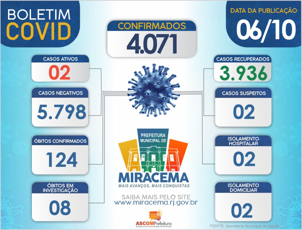 ATUALIZAÇÃO BOLETIM CORONAVÍRUS DIA 06/10/2021