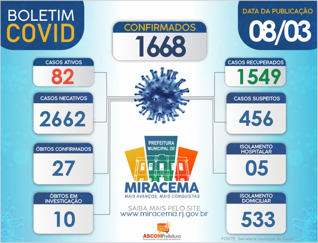 ATUALIZAÇÃO BOLETIM CORONAVÍRUS DIA 08/03/2021