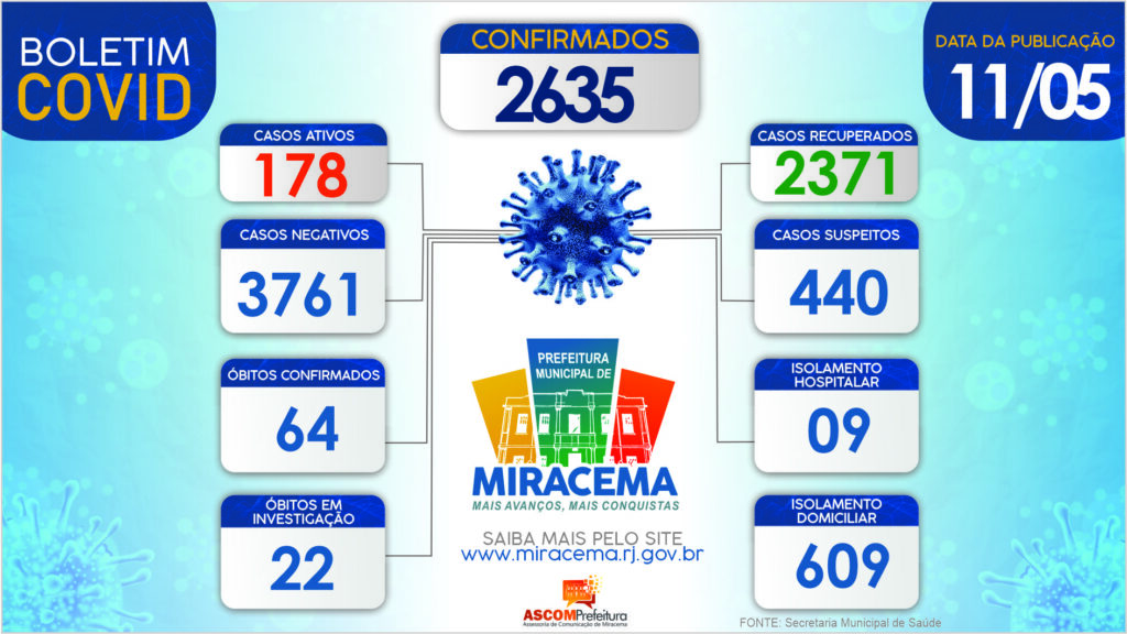 ATUALIZAÇÃO BOLETIM CORONAVÍRUS DIA 11/05/2021