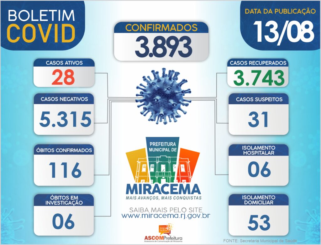 ATUALIZAÇÃO BOLETIM CORONAVÍRUS DIA 13/08/2021