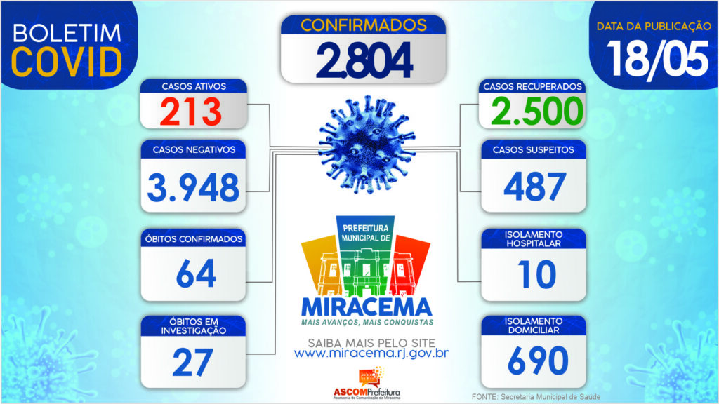 ATUALIZAÇÃO BOLETIM CORONAVÍRUS DIA 18/05/2021