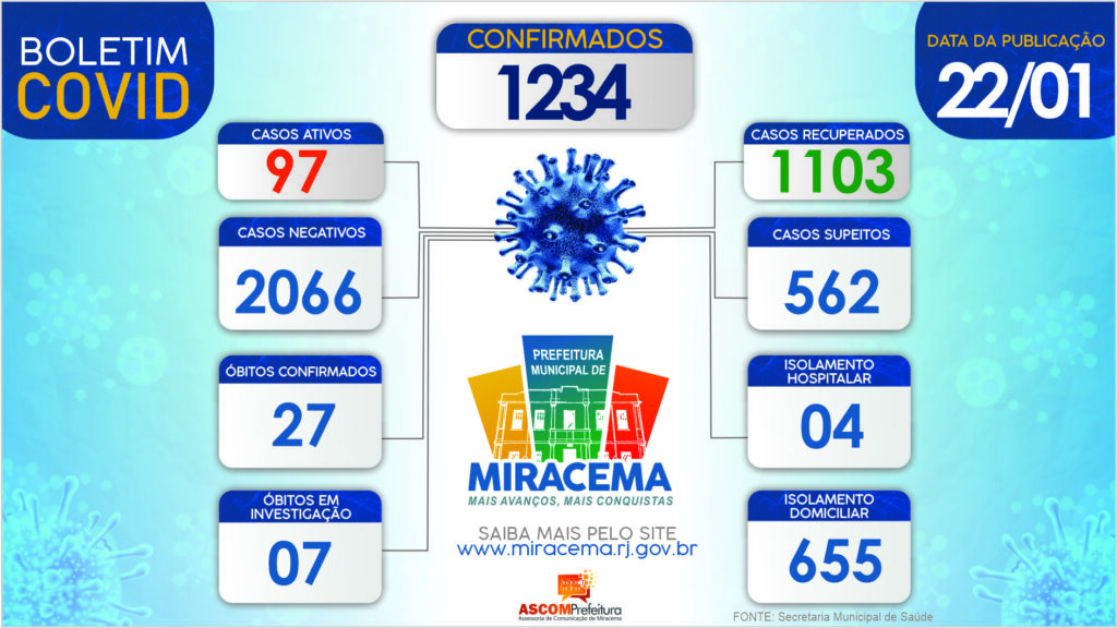 ATUALIZAÇÃO BOLETIM CORONAVÍRUS DIA 22/01/2021