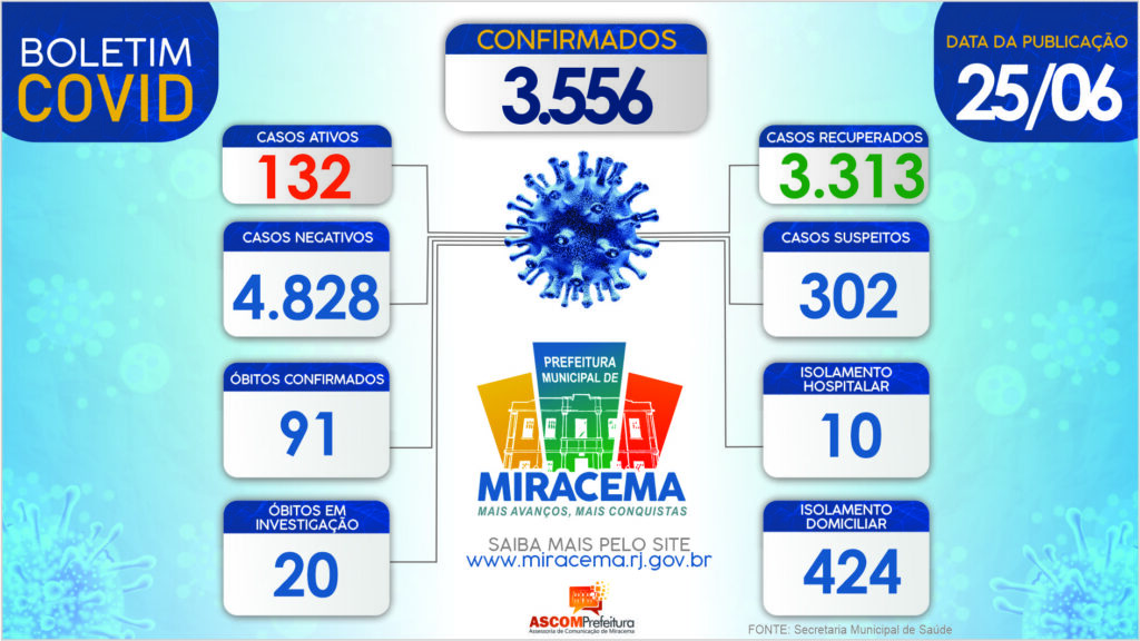 ATUALIZAÇÃO BOLETIM CORONAVÍRUS DIA 25/06/2021