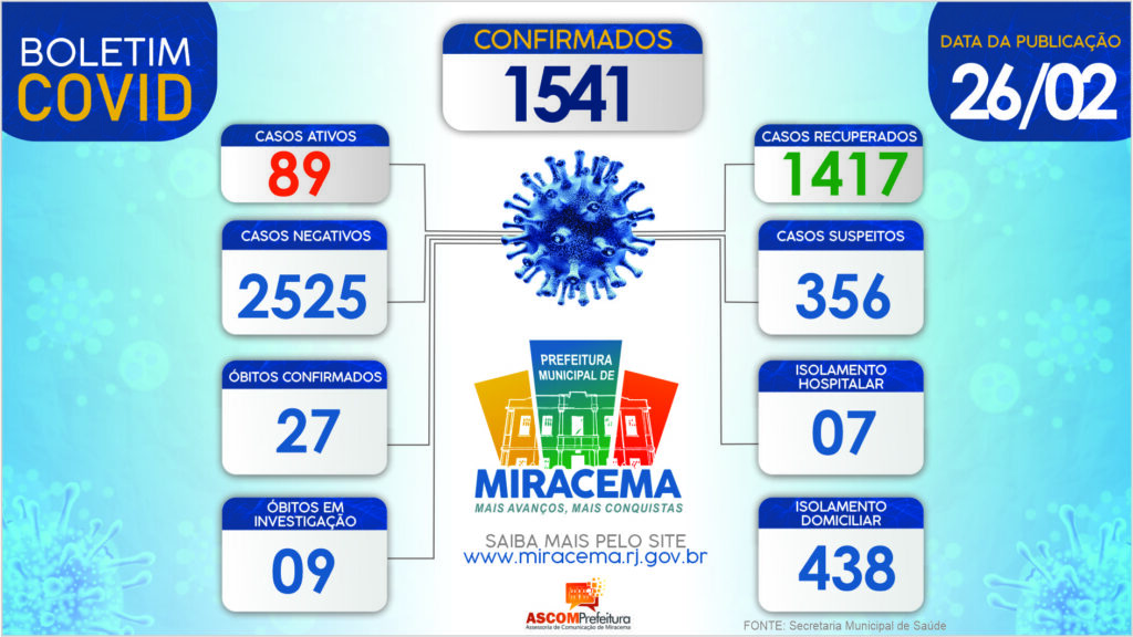 ATUALIZAÇÃO BOLETIM CORONAVÍRUS DIA 26/02/2021