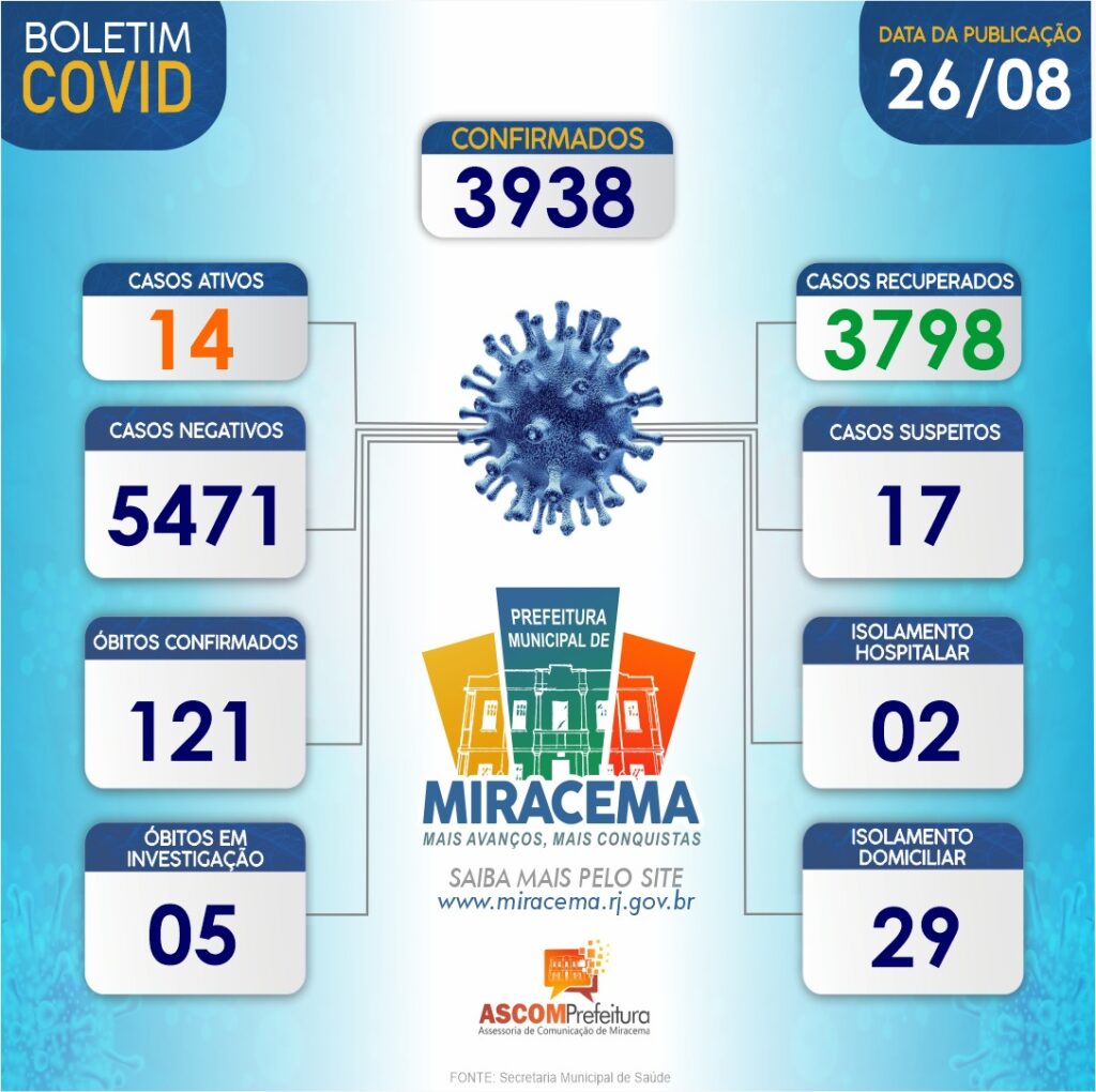 ATUALIZAÇÃO BOLETIM CORONAVÍRUS DIA 26/08/2021