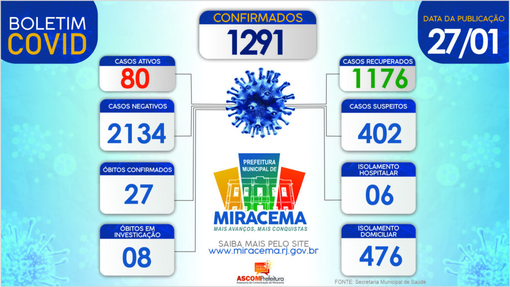 ATUALIZAÇÃO BOLETIM CORONAVÍRUS DIA 27/01/2021