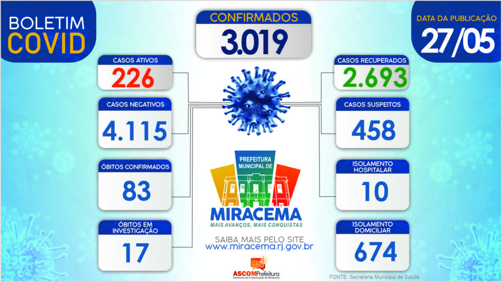 ATUALIZAÇÃO BOLETIM CORONAVÍRUS DIA 27/05/2021