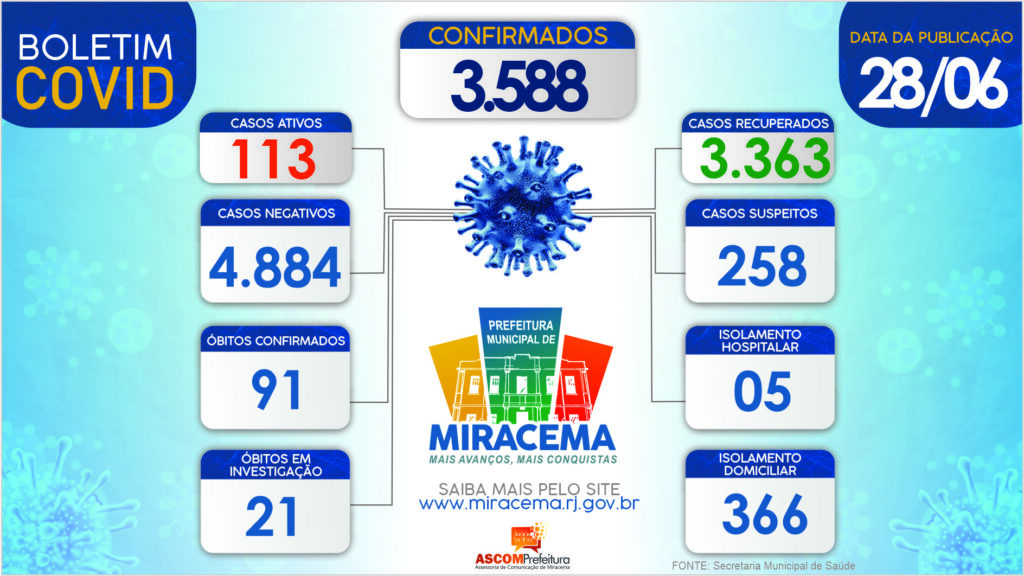 ATUALIZAÇÃO BOLETIM CORONAVÍRUS DIA 28/06/2021