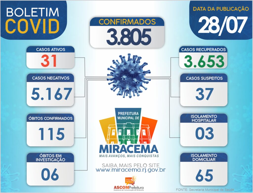 ATUALIZAÇÃO BOLETIM CORONAVÍRUS DIA 28/07/2021
