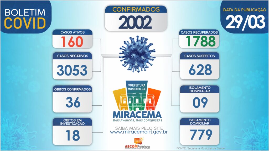 ATUALIZAÇÃO BOLETIM CORONAVÍRUS DIA 29/03/2021