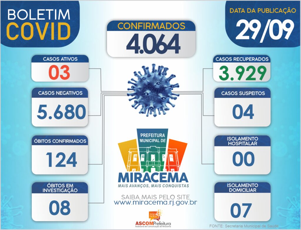 ATUALIZAÇÃO BOLETIM CORONAVÍRUS DIA 29/09/2021