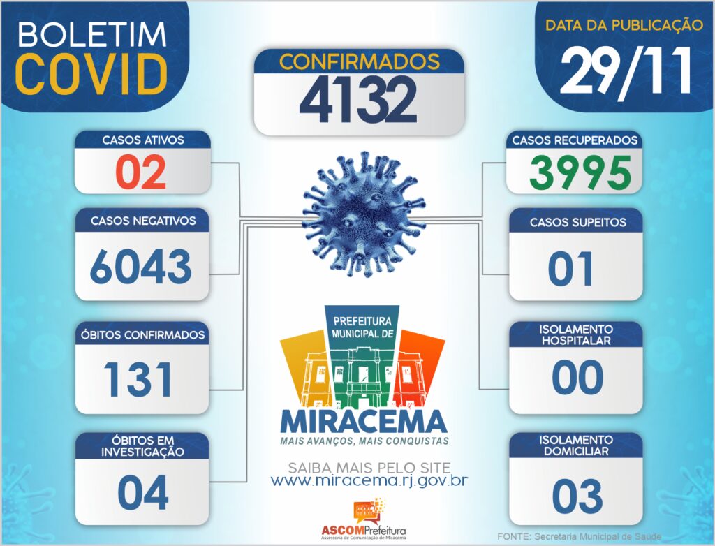 ATUALIZAÇÃO BOLETIM CORONAVÍRUS DIA 29/11/2021