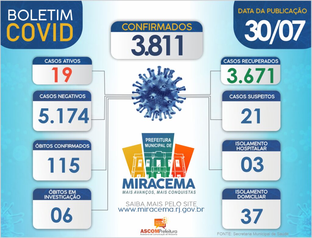 ATUALIZAÇÃO BOLETIM CORONAVÍRUS DIA 30/07/2021