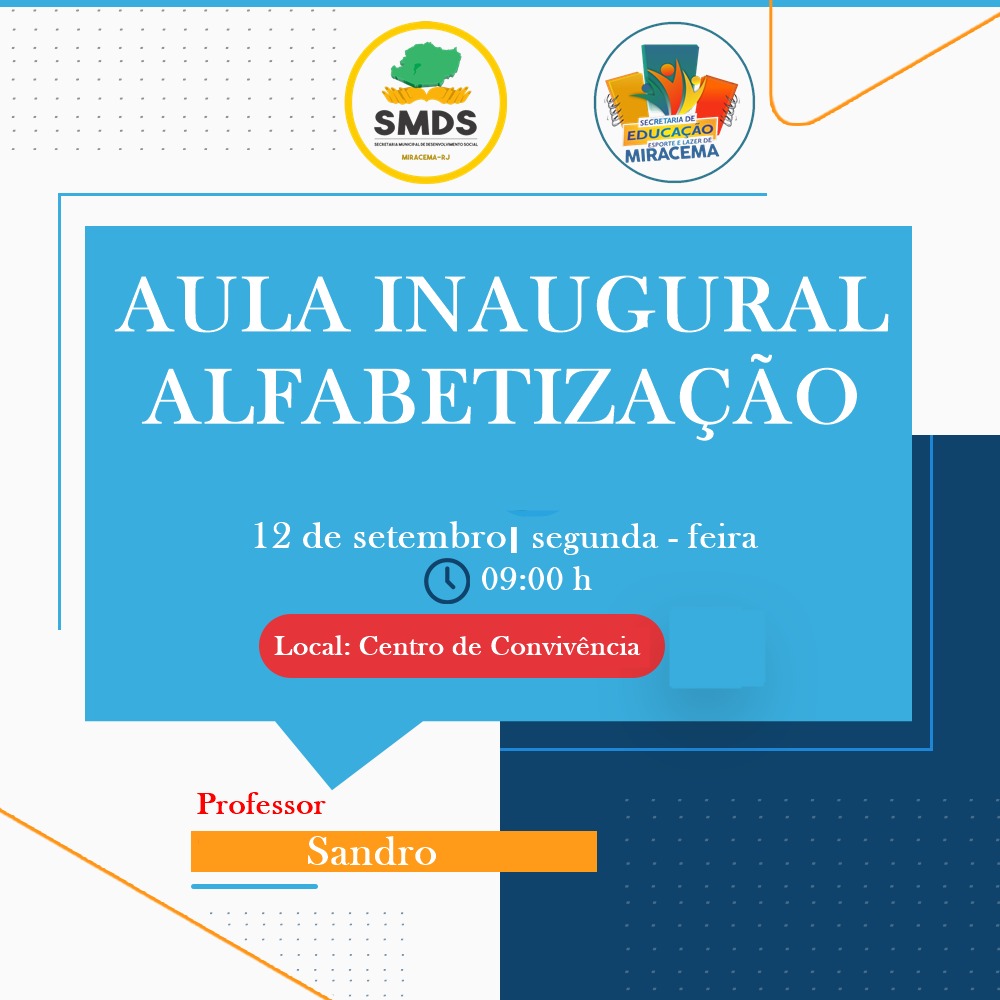 A partir da próxima segunda – feira (12), acontecerá a Aula Inaugural de Alfabetização Para Idosos, no Centro de Convivência. Será um grande marco na vida de inúmeros idosos que sonham com a possibilidade de assinar o próprio nome.