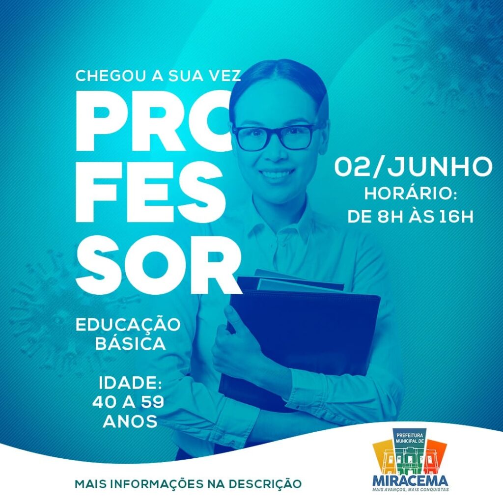 Recebemos 455 vacinas destinadas para os profissionais de educação. Serão vacinados os profissionais de Educação Básica (municipal, estadual e particular) na faixa etária de 40 a 59 anos.