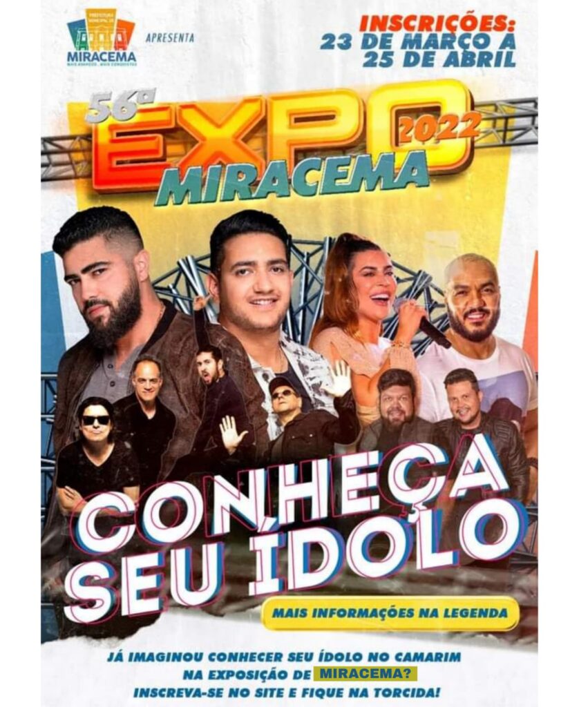Em comemoração à volta da exposição agropecuária de Miracema, no ano de 2022, a Assessoria de Comunicação de Miracema (ASCOM) juntamente com Dimensão promoverá um sorteio para que um munícipe possa conhecer um dos ídolos que virá à festa!