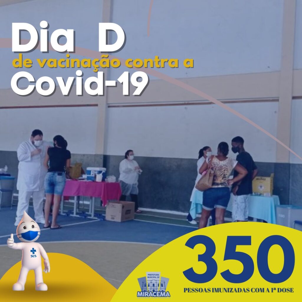 Neste último sábado foi feito o Dia D de Vacinação contra a Covid-19 em Miracema. Foram imunizados com a primeira dose 350 pessoas acima de 18 anos. Dessas doses 150 eram da Pfizer e 200 Coronavac.