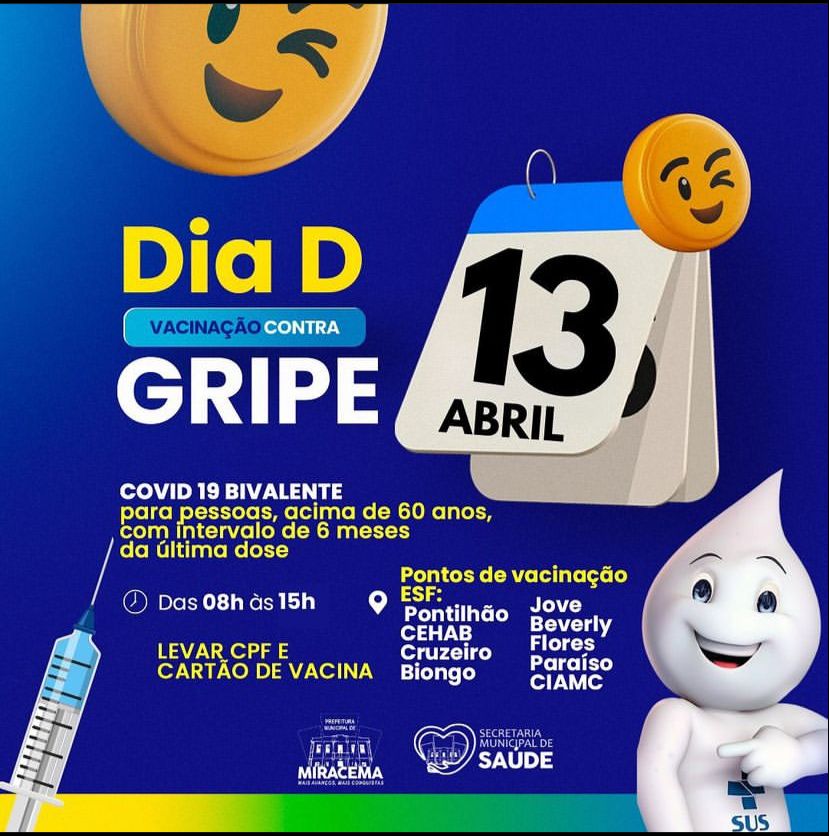 A prefeitura municipal convida a população prioritária para se vacinar neste sábado.