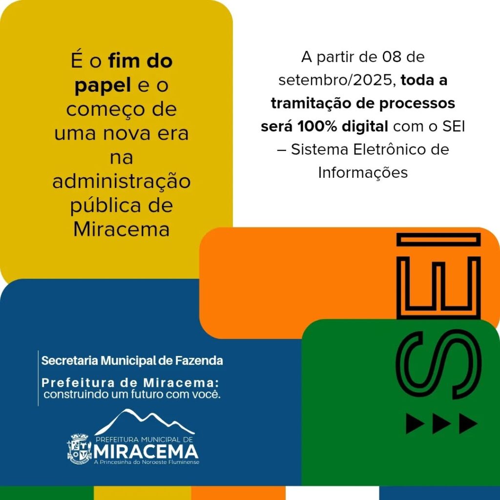 Imagine um setor público mais ágil, sustentável e eficiente, onde pilhas de papéis dão lugar a processos digitais acessíveis com apenas alguns cliques. Essa realidade já tem data para começar em Miracema: a partir de 08 de setembro de 2025, toda a tramitação de processos será 100% digital com o SEI – Sistema Eletrônico de Informações.