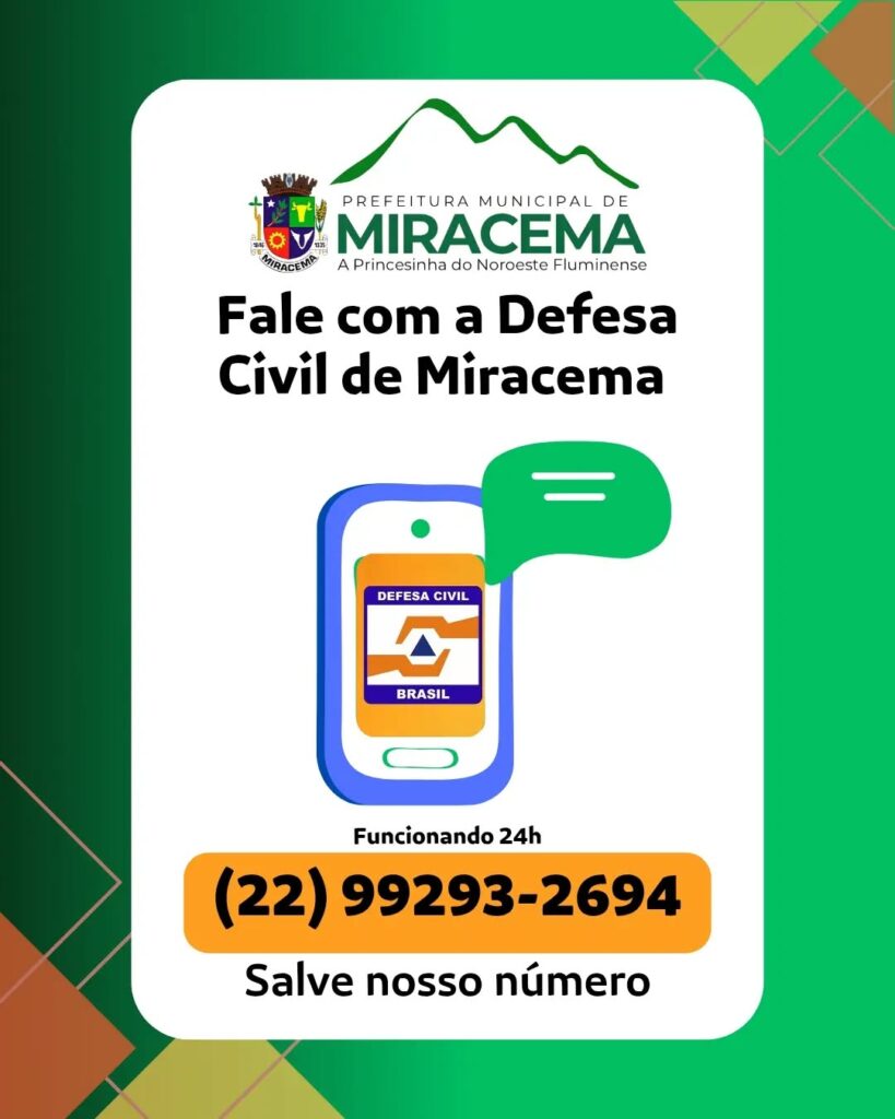 A Prefeitura de Miracema, comprometida com a segurança e bem-estar da população, reforça que a Defesa Civil está à disposição 24 horas por dia para atender a comunidade.