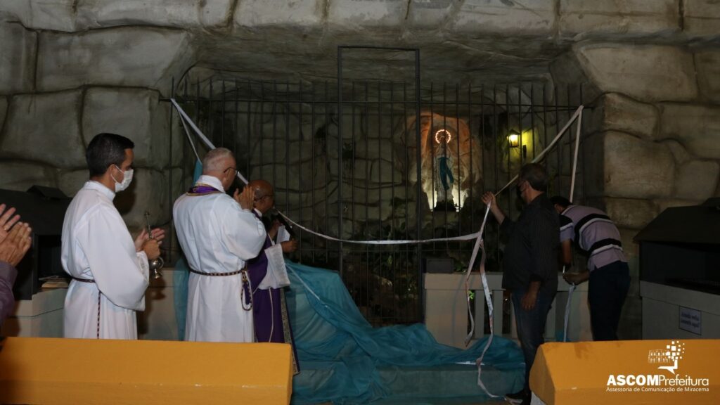 Neste último domingo (19), após a Santa Missa Campal , no Rink , os fiéis seguiram em procissão para a Gruta de Nossa Senhora de Lourdes , para acompanhar a reinauguração.