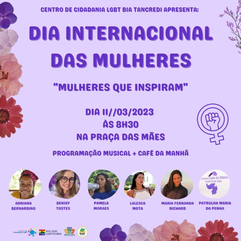 Em celebração ao mês da mulher, neste sábado, 11/03, na Praça das Mães, a partir das 8h30min, o Centro de Cidadania LGBT Bia Tancredi promoverá uma roda de conversa que contará com a presença de diversas mulheres miracemenses.