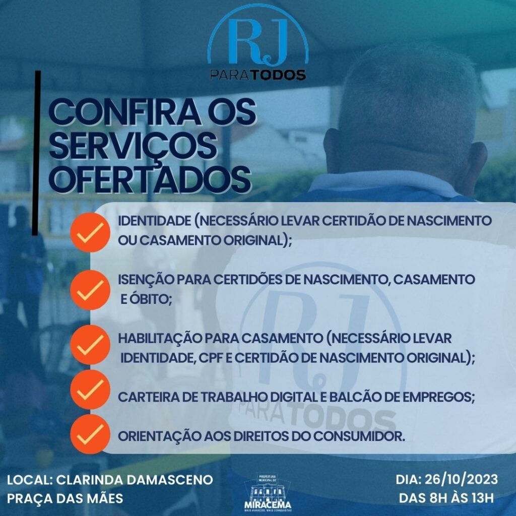 A parceria do Governo do Estado do Rio de Janeiro, através das Secretarias de Estado de Governo e de Desenvolvimento Social, com o município de Miracema conta com o apoio do DETRAN-RJ, FUNDAÇÃO LEÃO XIII, CEDAE e PROCOM.