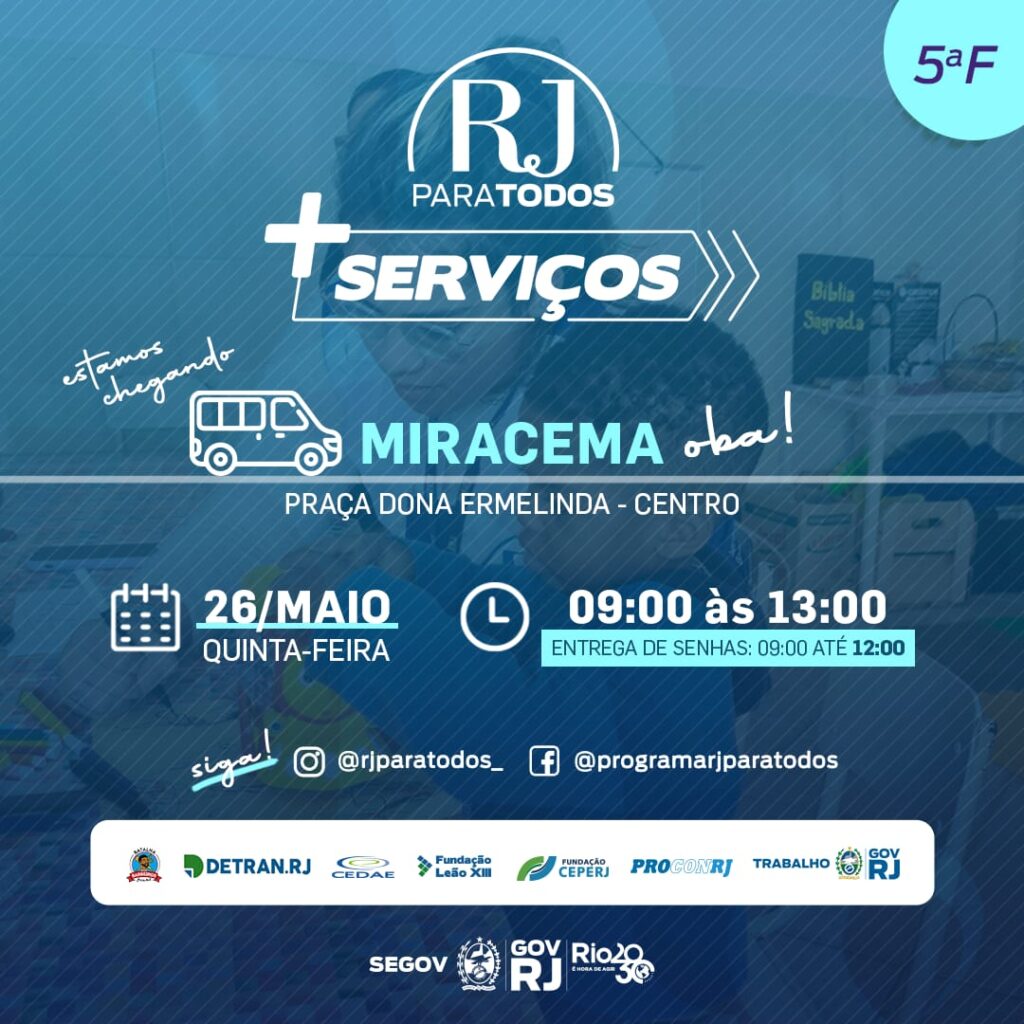 Nesta quinta-feira, 26/05, a partir das 9h — na Praça Dona Ermelinda, acontecerá o evento promovido pela secretaria de governo e trabalho do Rio de Janeiro, o qual ofertará atendimentos voltados à população.